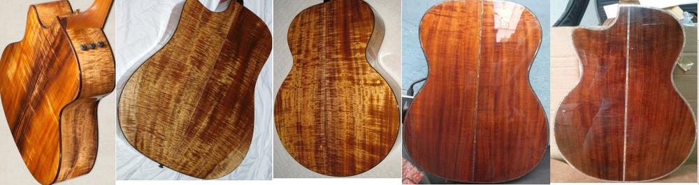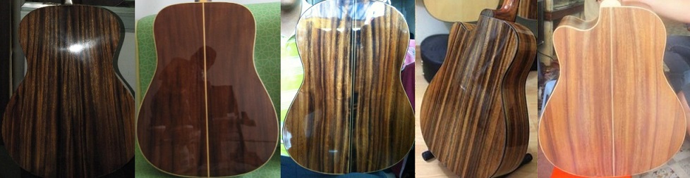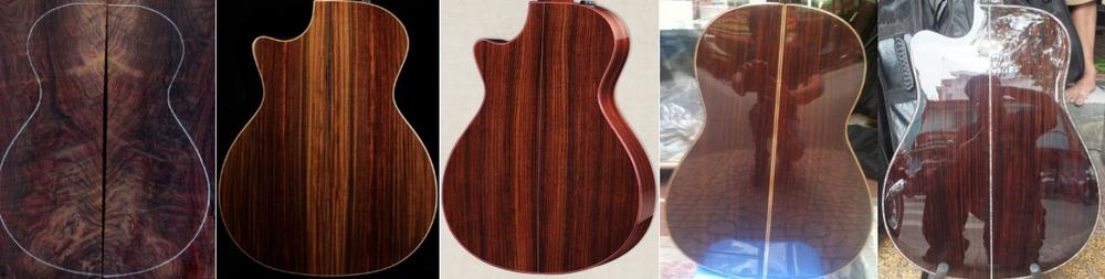 Gỗ làm mặt lưng và hông đàn guitar, nhất quyết phải là gỗ cứng, loại gỗ mọc ở xứ nhiệt đới như Ấn độ, Châu Phi, Đông Nam Á, Nam Mỹ. Các loại gỗ làm back & side cũng vô cùng đa dạng. Mỗi loại lại cho ra một âm sắc khác nhau.
